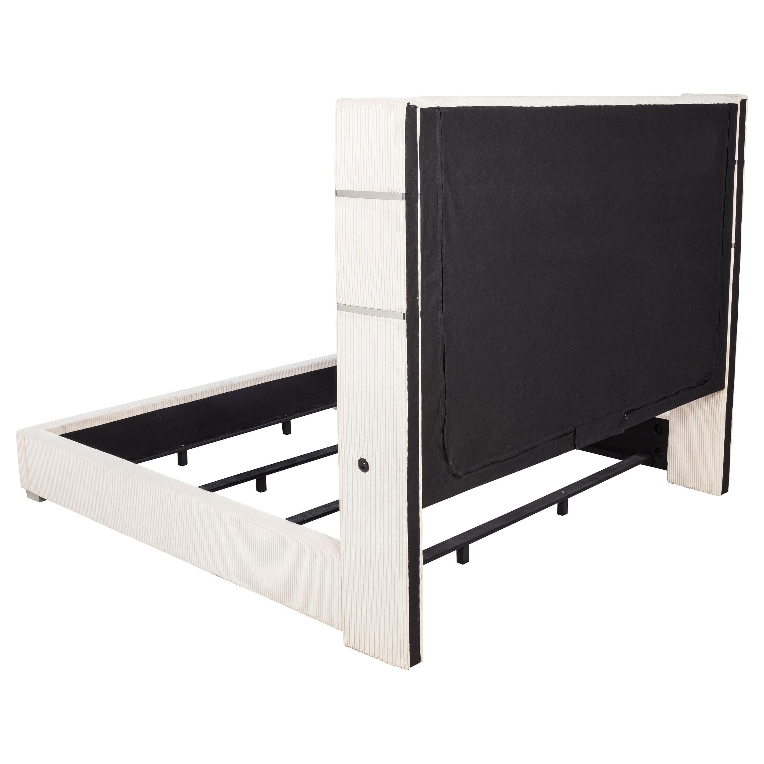 Tisdall Upholstered Eastern King Flame Visualizer Bed Cream